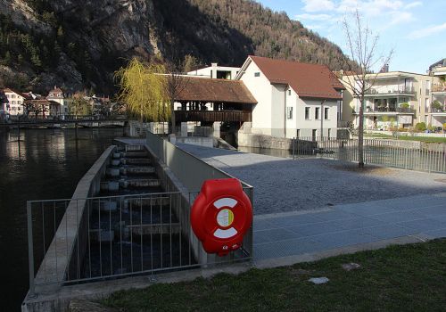 Mit der Renovation der Schleuse wurde eine Fischtreppe eingerichtet. Sie ermöglicht die ungehinderte Zirkulation der Tiere vom Thuner- in den Brienzersee. Im August 2005 zerstörte ein Hochwasser die Anlage. Zwei Jahre später war der Fischpass für Äsche, See- und Bachforellen, Felchen und Barben wieder passierbar. Jetzt fehlt nur noch der Lachs.